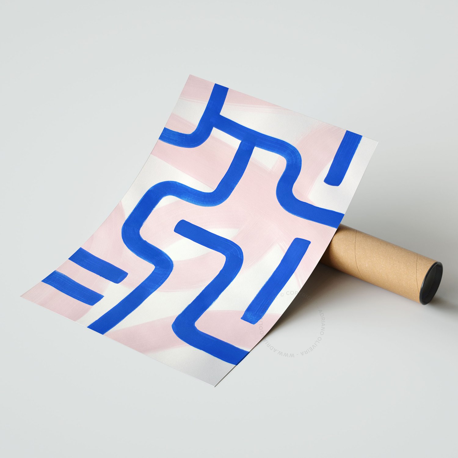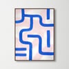 Contemporary, modern and abstract acrylic painting blue and pink.
