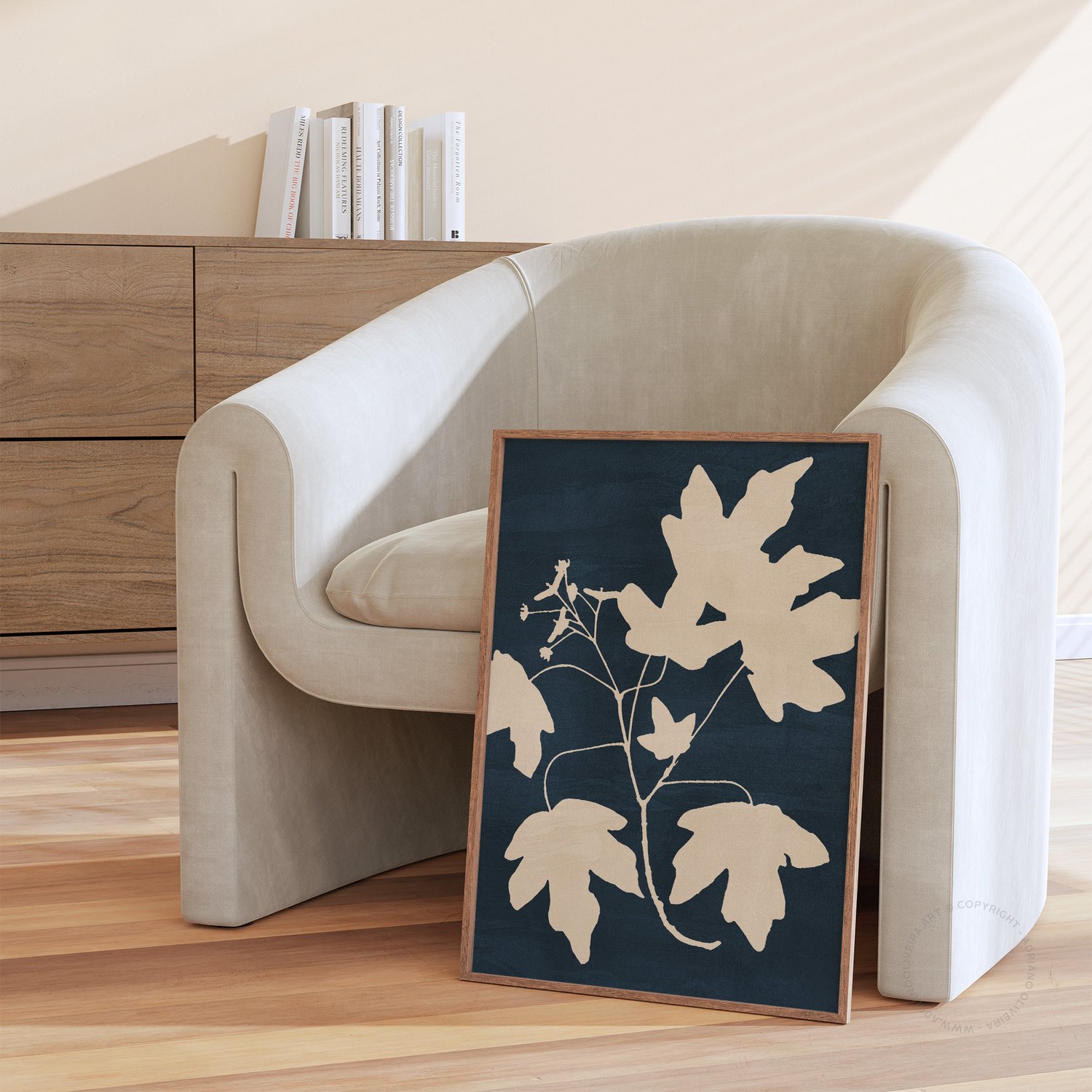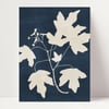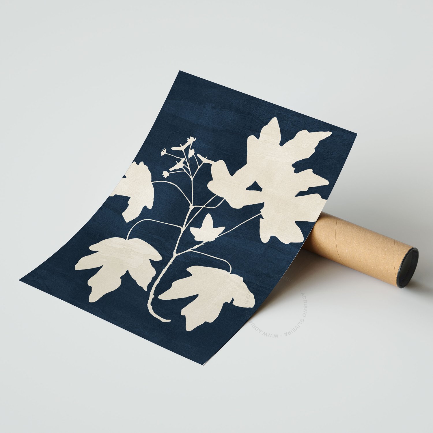 Abstract, modern and contemporary illustration of a maple tree branch (blue version).