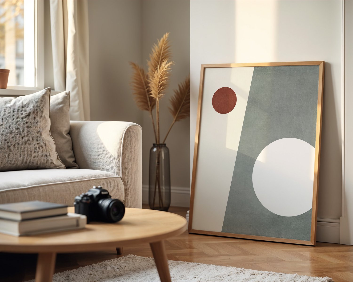 Contemporary, modern and minimalist abstract geometric shapes with textured elements.