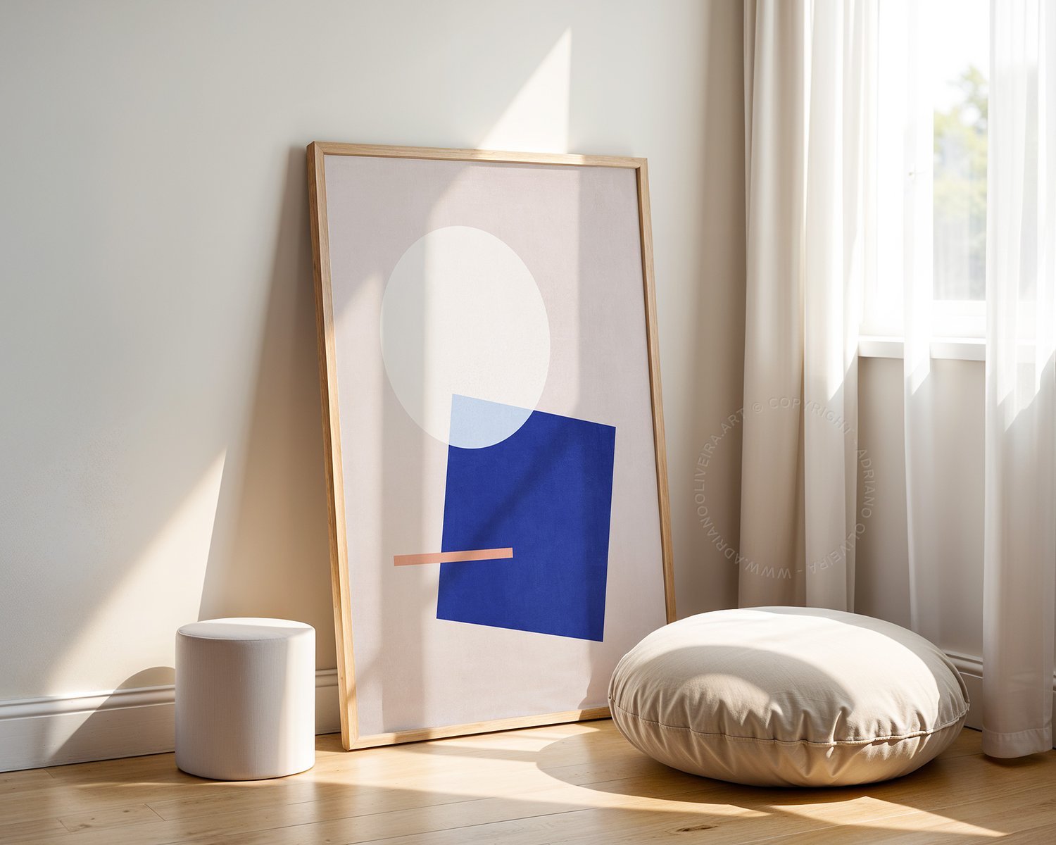 Contemporary, modern and minimalist abstract geometric shapes with textured elements.